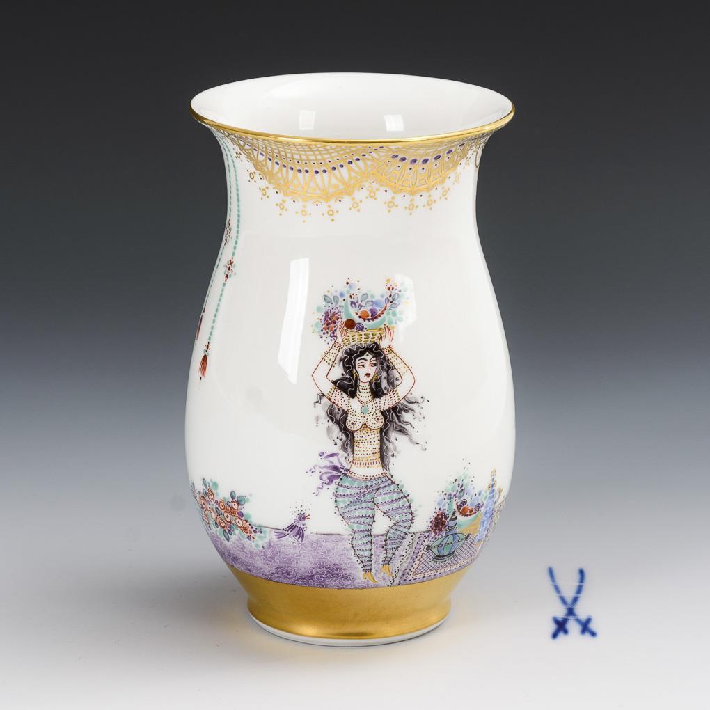Bemalt mit einer orientalischen, einen Blumenkorb auf dem Korb tragenden Tänzerin.