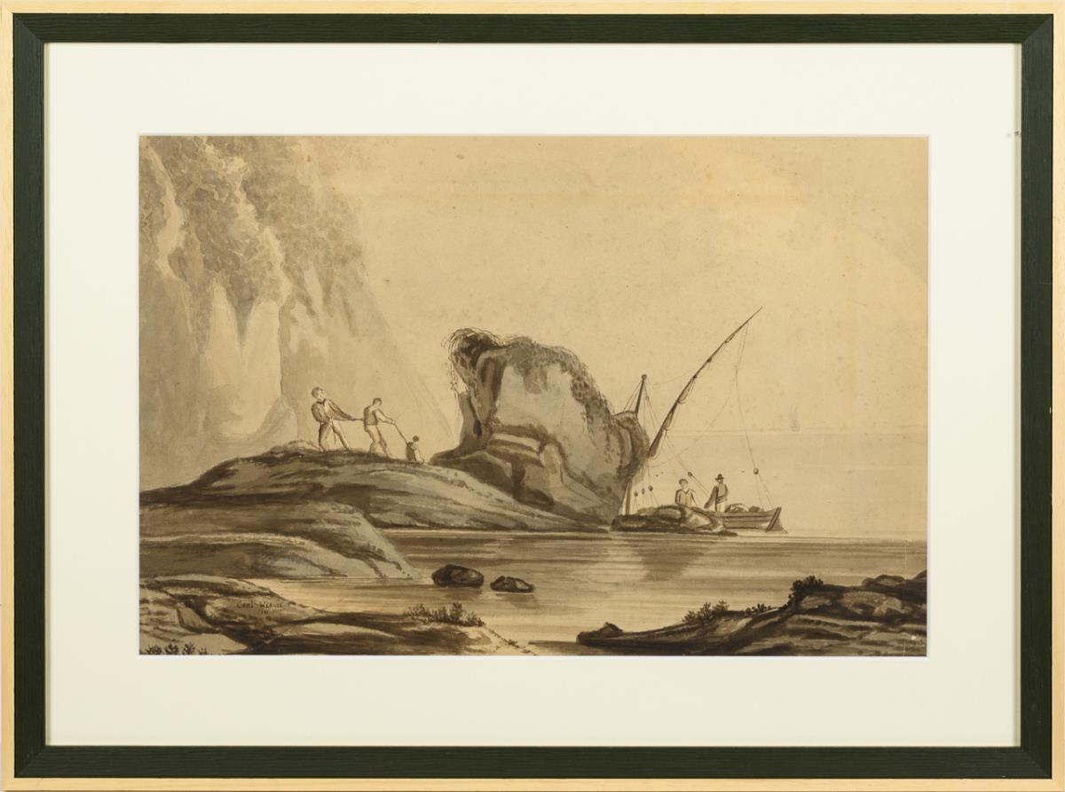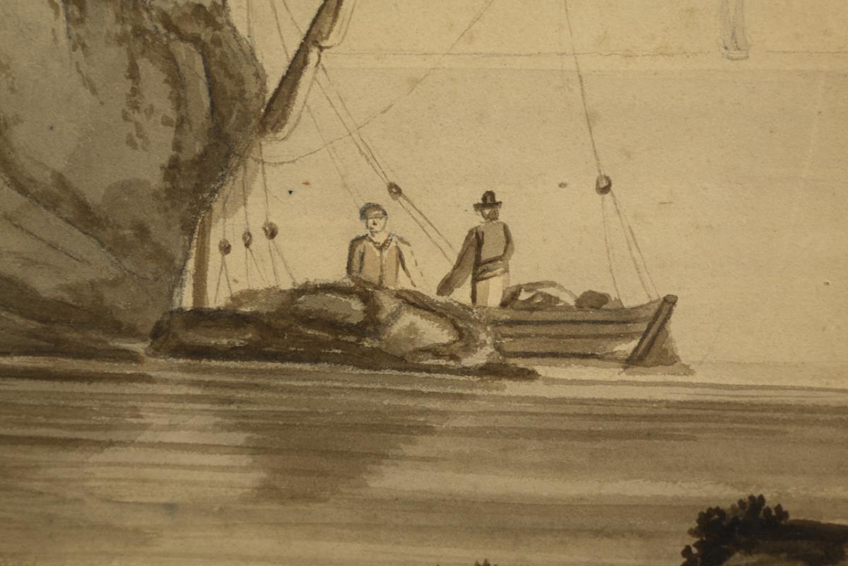 Sepia Aquarell. Links unten signiert. 1841.