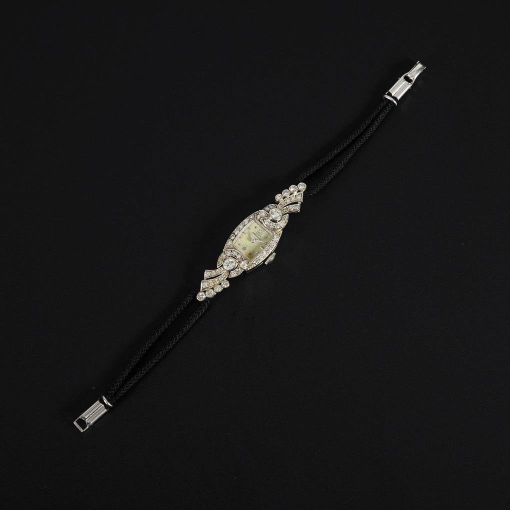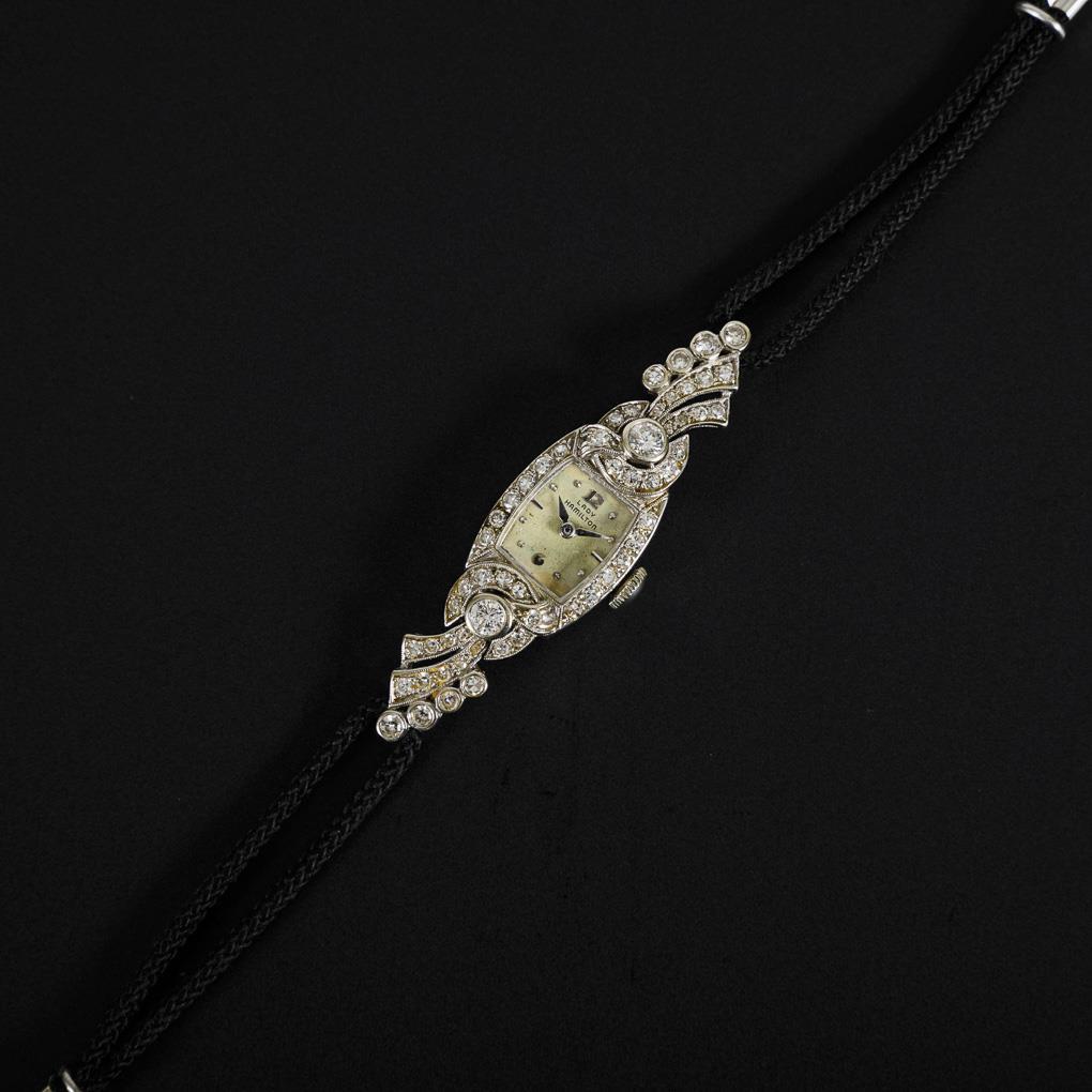 Amerikanische Armbanduhr "Lady Hamilton" mit Brillanten und Diamanten, um 1950.