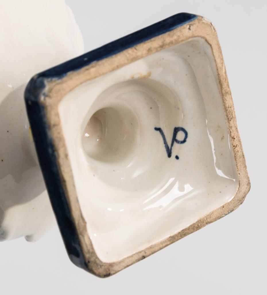 Fayence, weiß glasiert, farbig staffiert.H 16,5 cm.