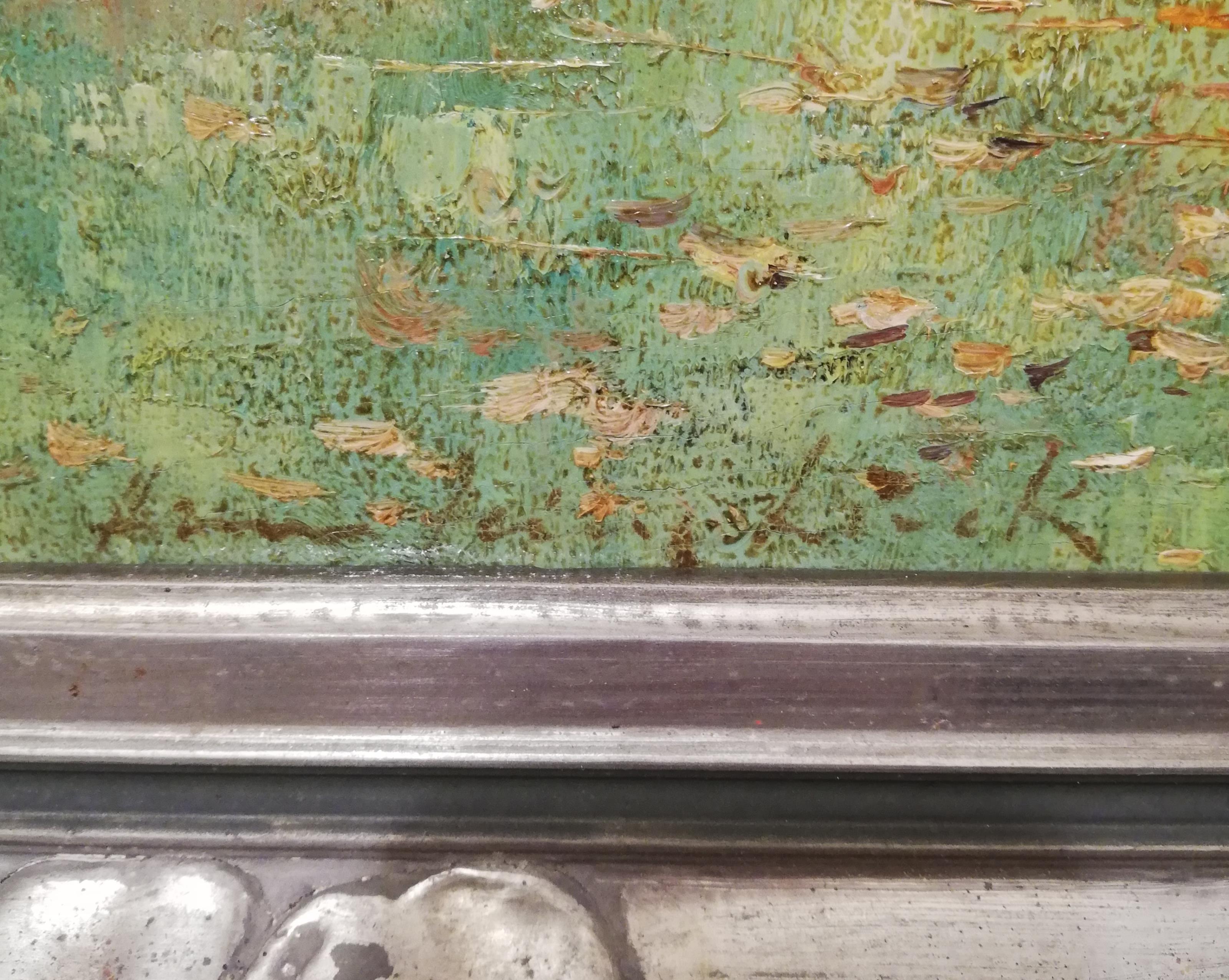 Öl/Leinwand. Links unten undeutlich signiert.