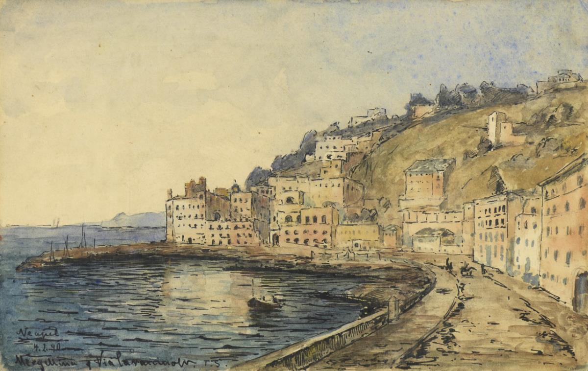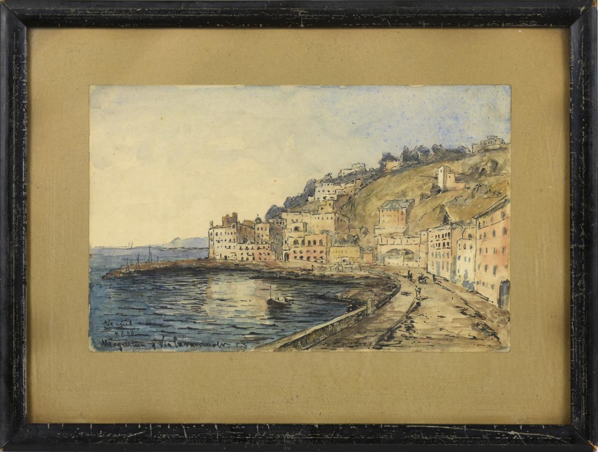 Aquarell über Tusche. Italien. Links unten monogrammiert mit Zusatz Mergellina Via Caracciolo Neapel. 4.2.(18)90.