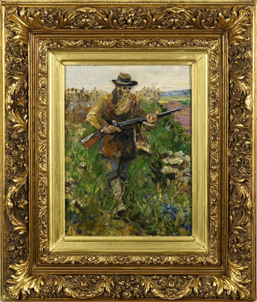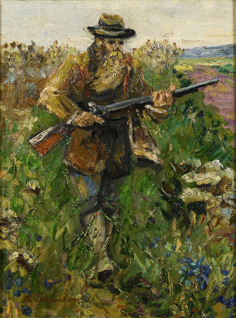 Russischer Maler: Jäger im Feld