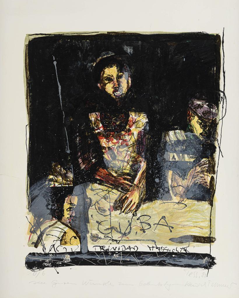 Heisig, Bernhard (1925 Breslau - 2011 Strodehne): "Lenin und der ungläubige Timofej", Lithografie, Bleistiftsignatur, Blatt: 50 x 37,8 cm, Blattrand griffspurig und leicht gebräunt | Ausstellungsplakat "Ausstellungen im Foyer Bernhard Heisig 20. Mai bis 12. Juni 1980", Farbsiebdruck, Bleistiftsignatur mit Widmung "für Rosemarie Jüdisch herzlich Bernhard Heisig", Blatt: 57 x 40,5 cm, Blatt knickspurig und mit Riss am linken Rand | Tessmer, Heinrich (1943 Rottluff - 2012 Berlin): "Trinidad", Farblithografie, Bleistiftsignatur mit Widmung "Alle Guten Wünsche zum Geburtstag Heinrich Tessmer", [19]80, Exemplar: 20/6, Blatt: 55 x 45 cm, linker Rand mit Riss, Randbereich griffspurig | Ohne Titel, Lithografie, Bleistiftsignatur, [19]84, Exemplar "A.", Blatt: 39,5 x 42,5 cm, .