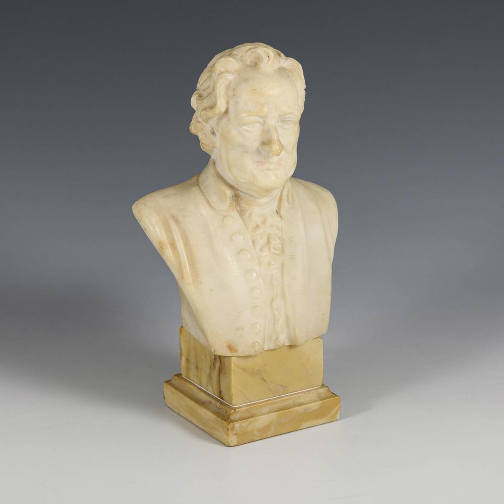 Bildnis des Geheimrates. Verschmutzt, Lippen wohl nachträglich rot nachgezogen, minimale Chips am Sockel.