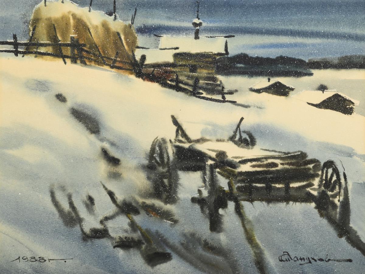 Aquarell. Rechts unten undeutlich kyrillisch signiert, verso kyrillisch bezeichnet. 1988.