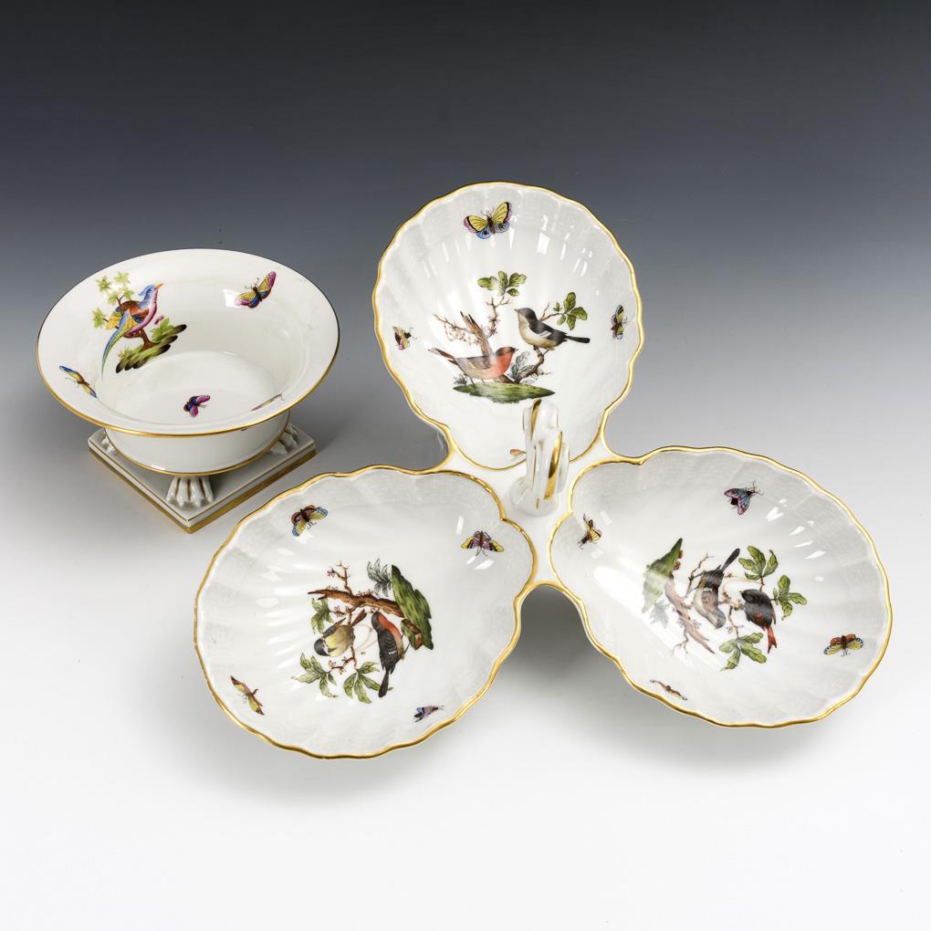 Kraterschale und Cabaret mit Vogelmalerei. Herend.