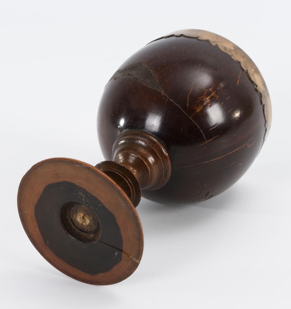 Kokosnuss, Silber (geprüft), Nussbaum gedrechselt.H 14 cm.