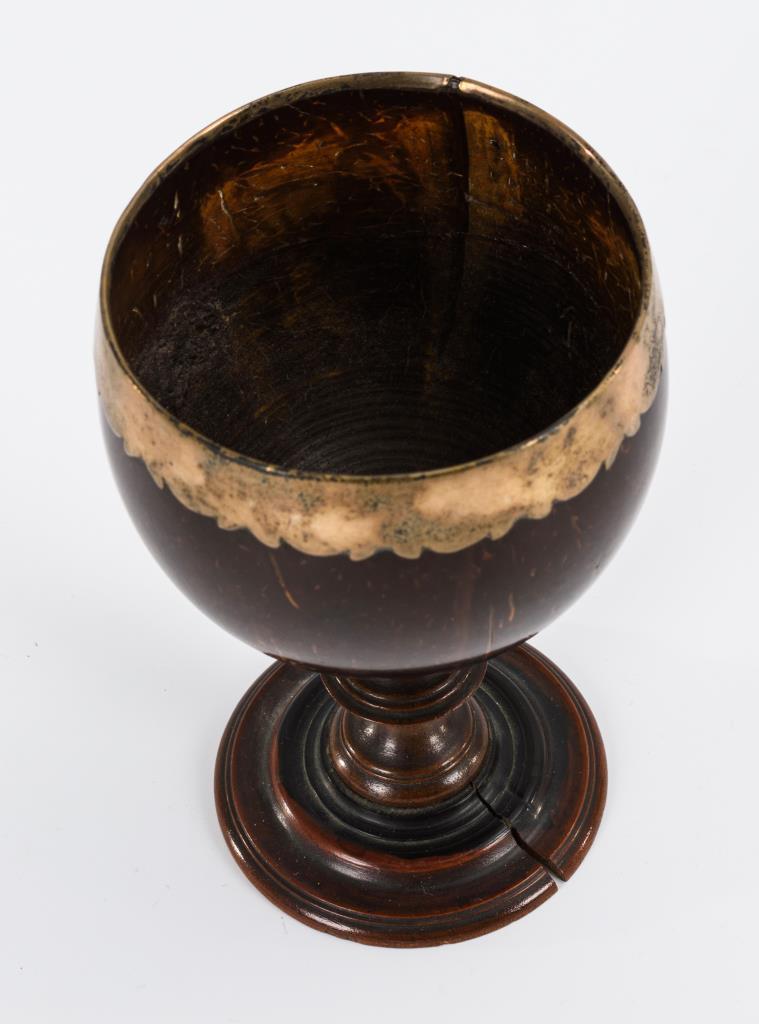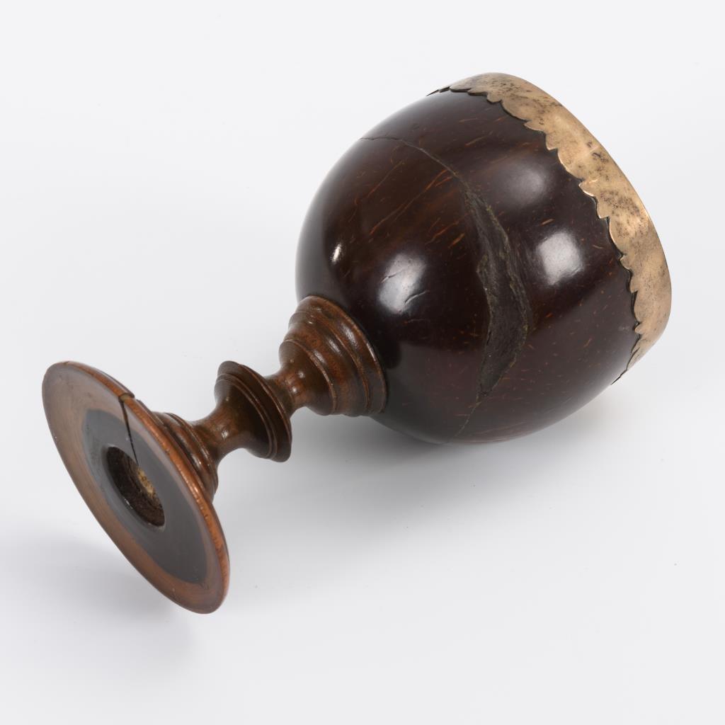 Kuppa und Silberrand wohl 17./18. Jh., Drechselfuß um 1900.