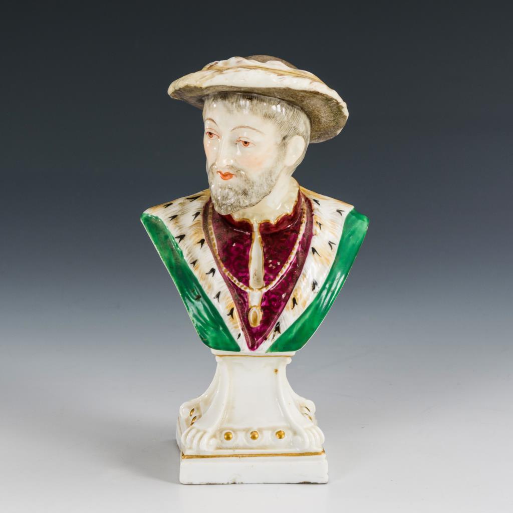 Polychrom bemalt, goldstaffiert.H 13,5 cm.