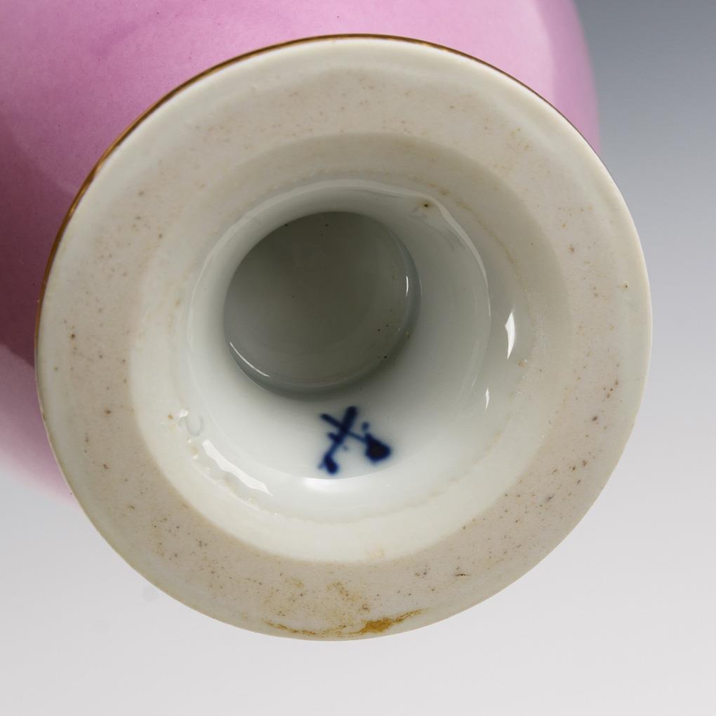 Mit rosafarbenem Teilfond sowie floraler und ornamentaler Goldmalerei. Haarriss am Kummenrand.