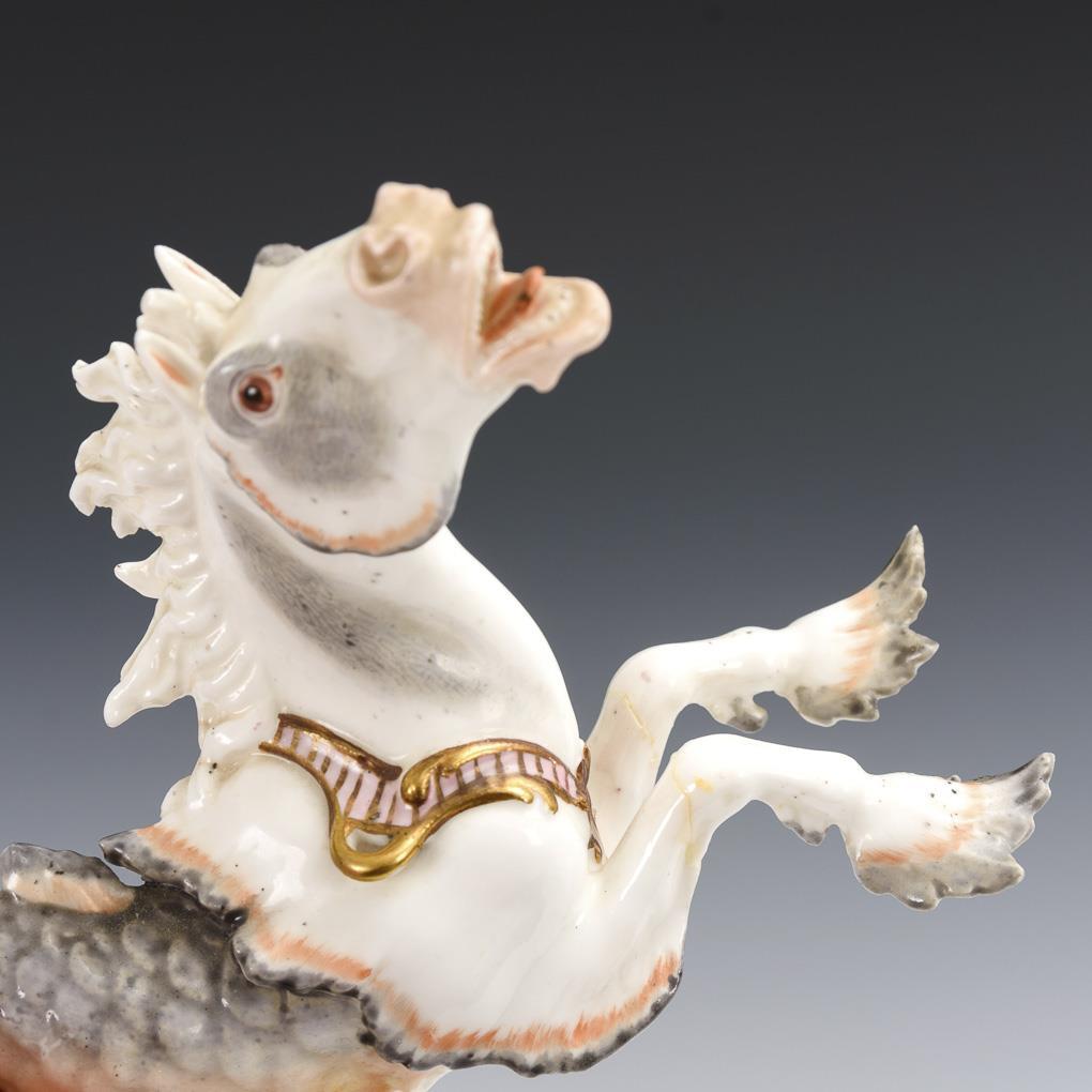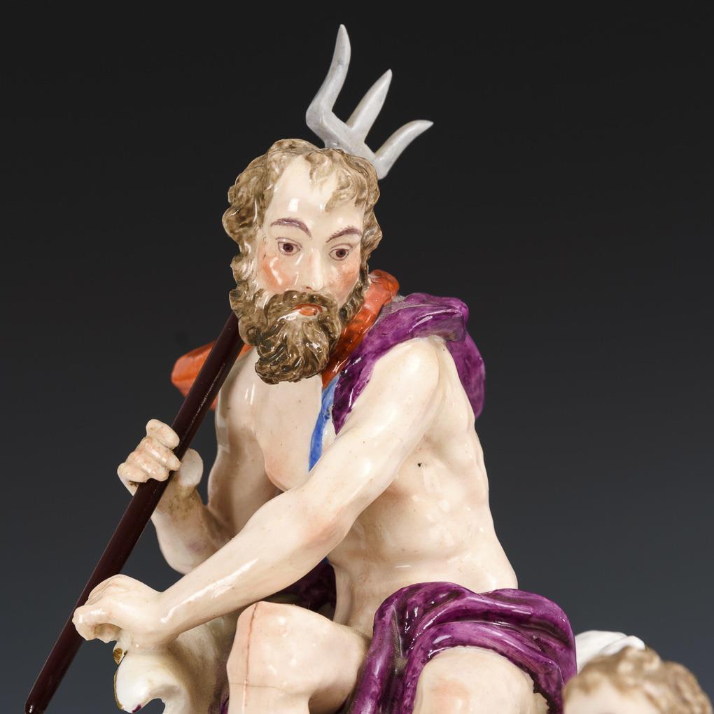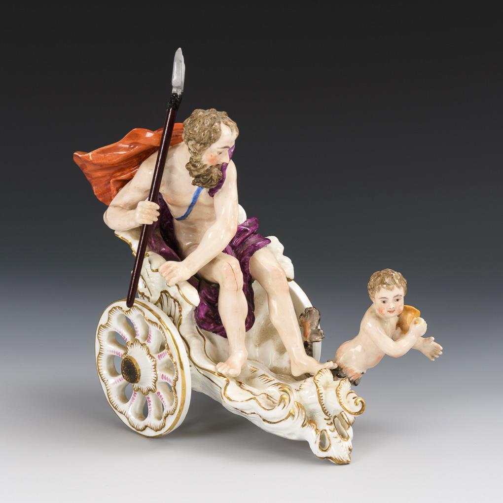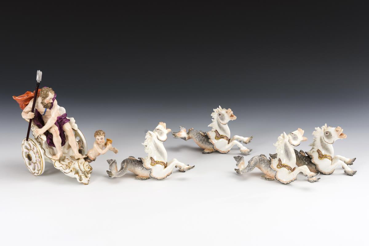 Neptun im Wagen mit vier Hippokampi. Meissen.