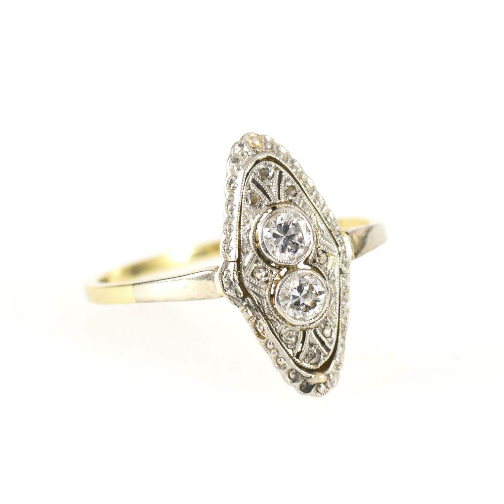 Art-déco-Ring mit Brillanten und Diamantrosen.
