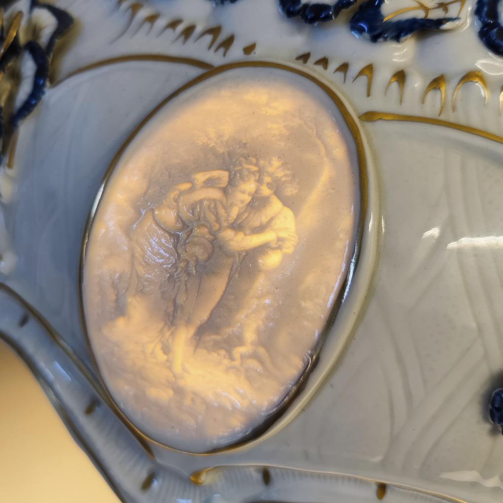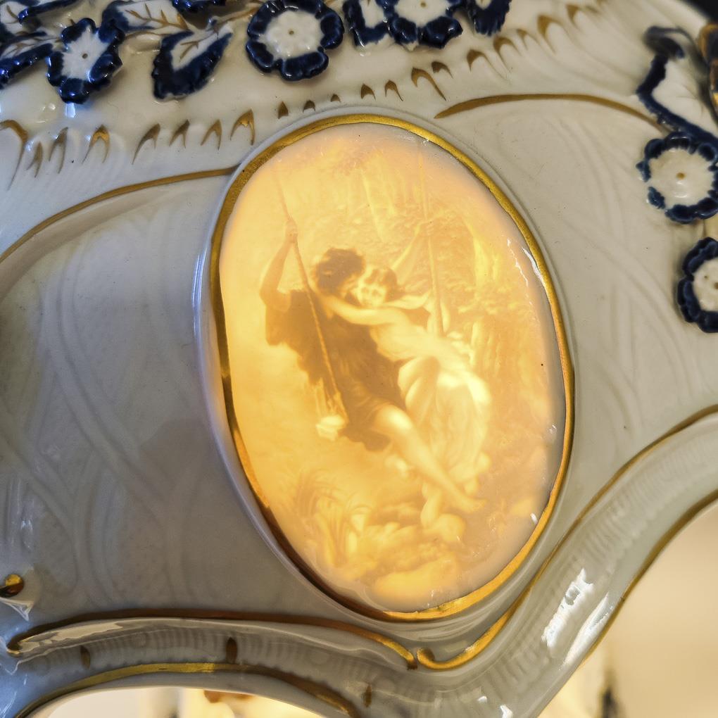 Lithophanielampe mit Blaumalerei| siehe Nachtrag. Schierholz.