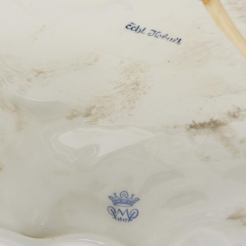 Unterglasurblaue Malerei, polychrome Aufglasurmalerei, Goldstaffage. H 56 cm.