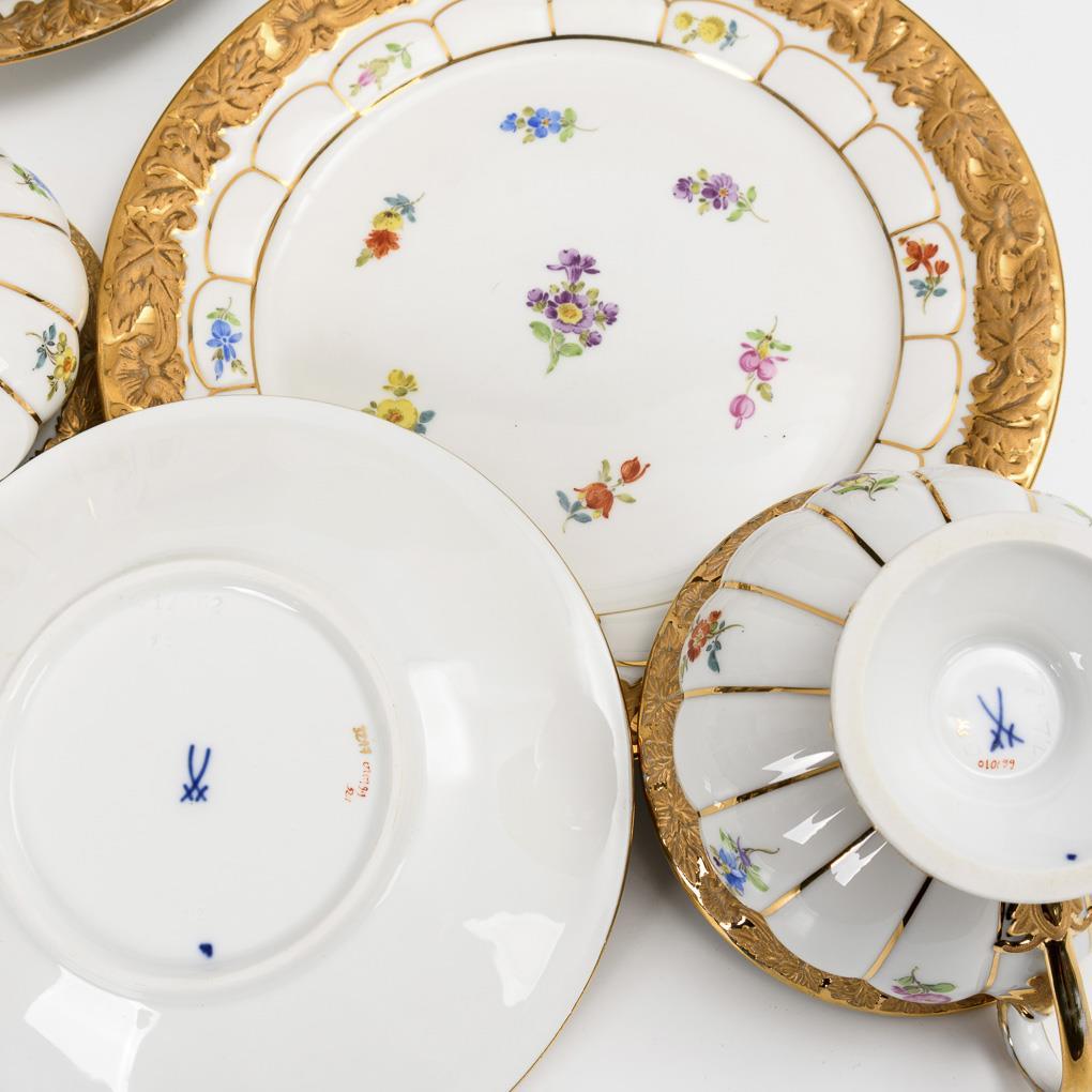 3 Gedecke "X-Form" mit Streublümchenmalerei| siehe Nachtrag. Meissen.