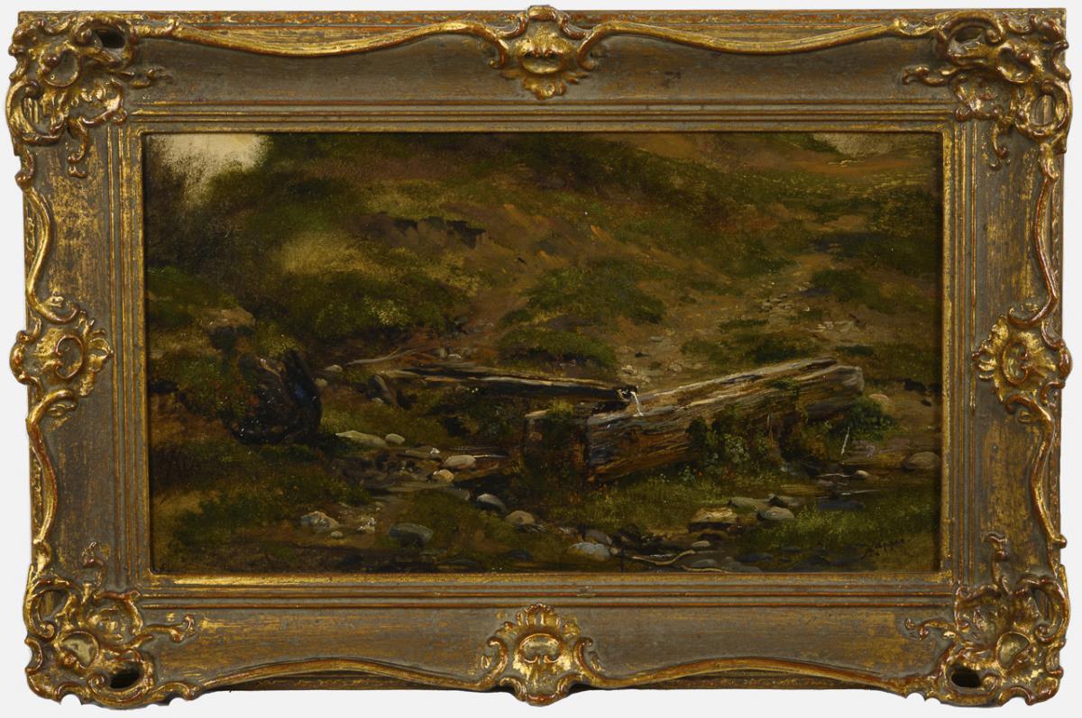 Berghang mit Quelle und Ablauf. Minimale Altersspuren.
