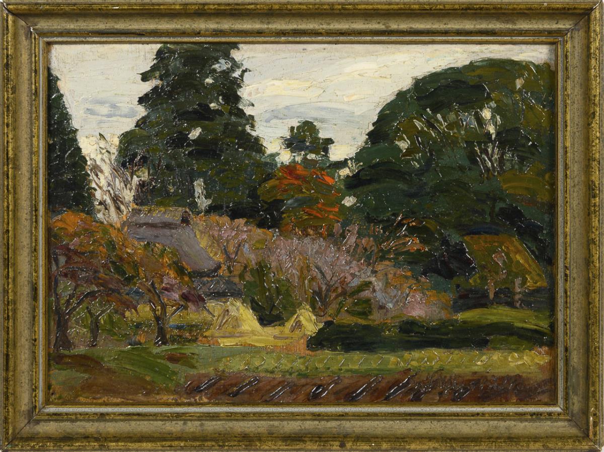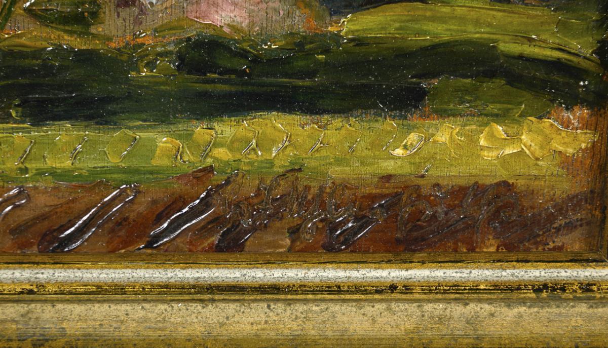 Öl/Holz. Links unten undeutlich signiert, verso undeutlich bezeichnet/betitelt. 1919.