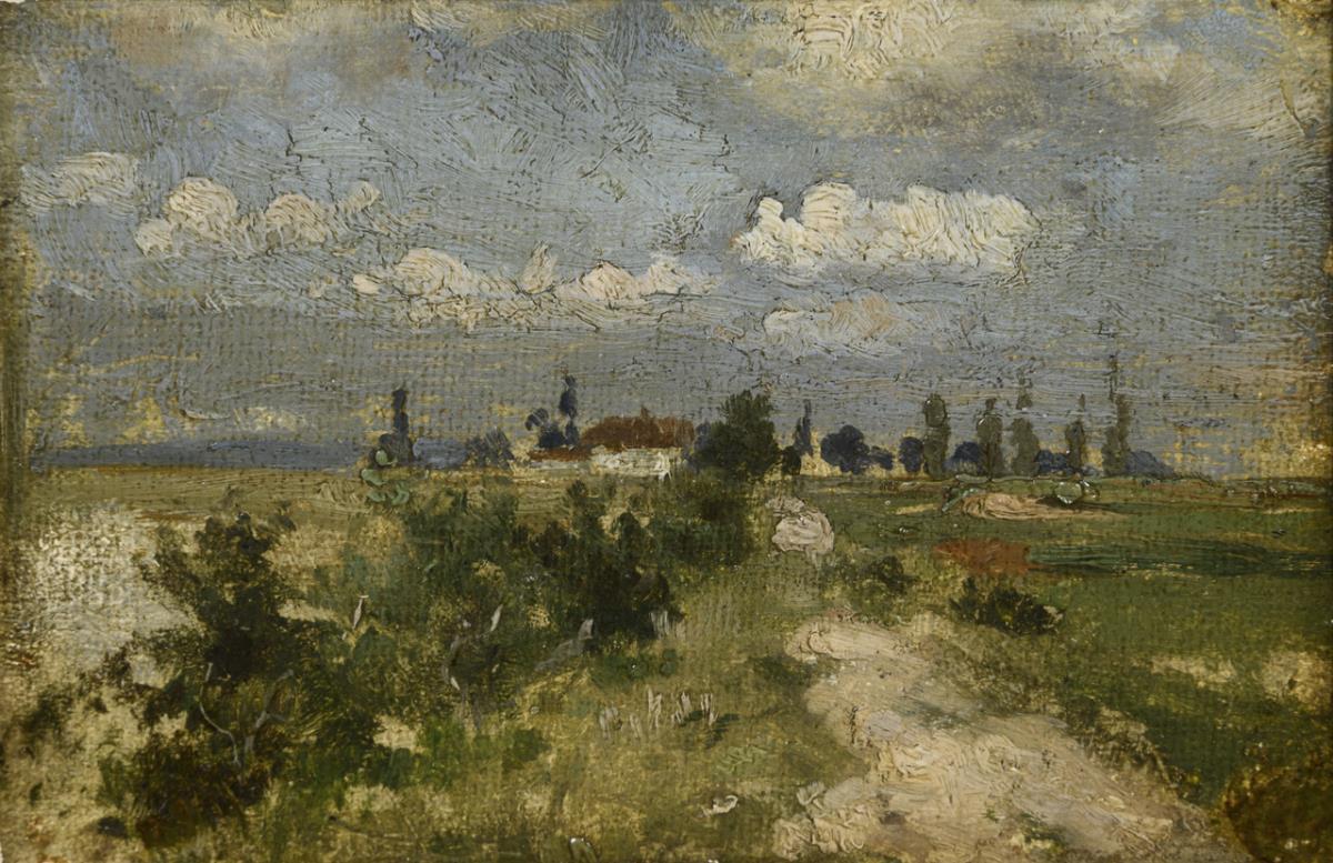 Münchner Maler 19. Jh.: Weite Landschaft mit Ortschaft