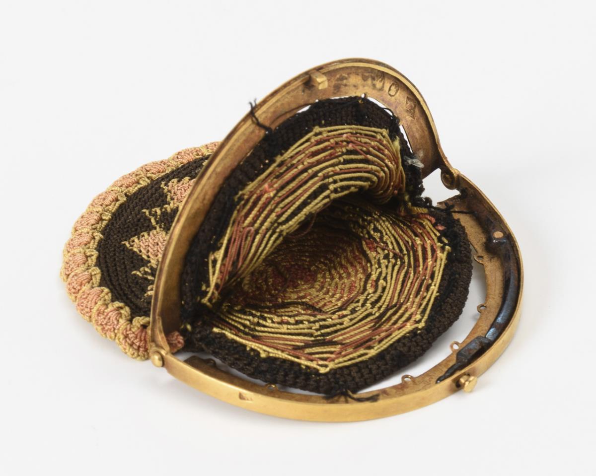 Biedermeier-Geldbörse mit goldenem Bügel.