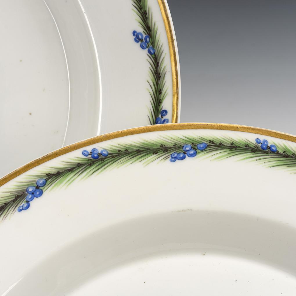 Modell "Konisch". Auf der Fahne eine Wacholderbordüre, Goldrand. Minimaler Goldabrieb am Rand.