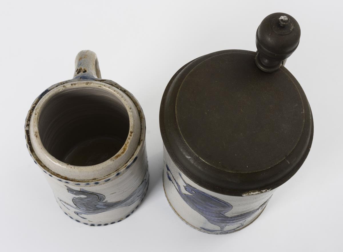2 Westerwälder Walzenkrüge mit springenden Pferden.