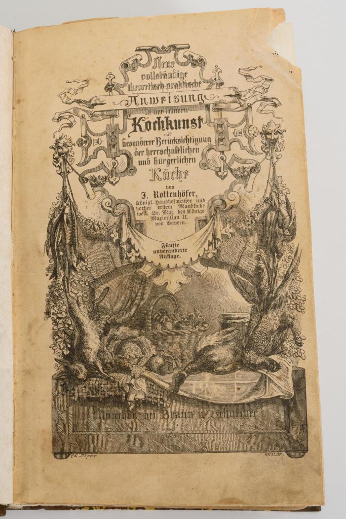 Weilerin, Sophia Juliana: "Augsburgisches Kochbuch". Augsburg 1836, in der Joseph Wolffischen Verlagsbuchhandlung, 20. Auflage. 24, 648, 16 Seiten. / Heitz, J.M.: "Die Wiener Bürger-Küche", Wien 1902, 1. Auflage, Verlag von A. und R. Heitz. 643 Seiten. / Rottenhöfer , J.: "Neue vollständige theoretisch-praktische Anweisung in der feinen Kochkunst mit besonderer Berücksichtigung der herrschaftlichen und bürgerlichen Küche". München 1882, 5. Auflage. 1024 Seiten, mit einigen Illustrationen. Alle im jünger nachgebundenen Halbledereinband, leichte Gebrauchsspuren.