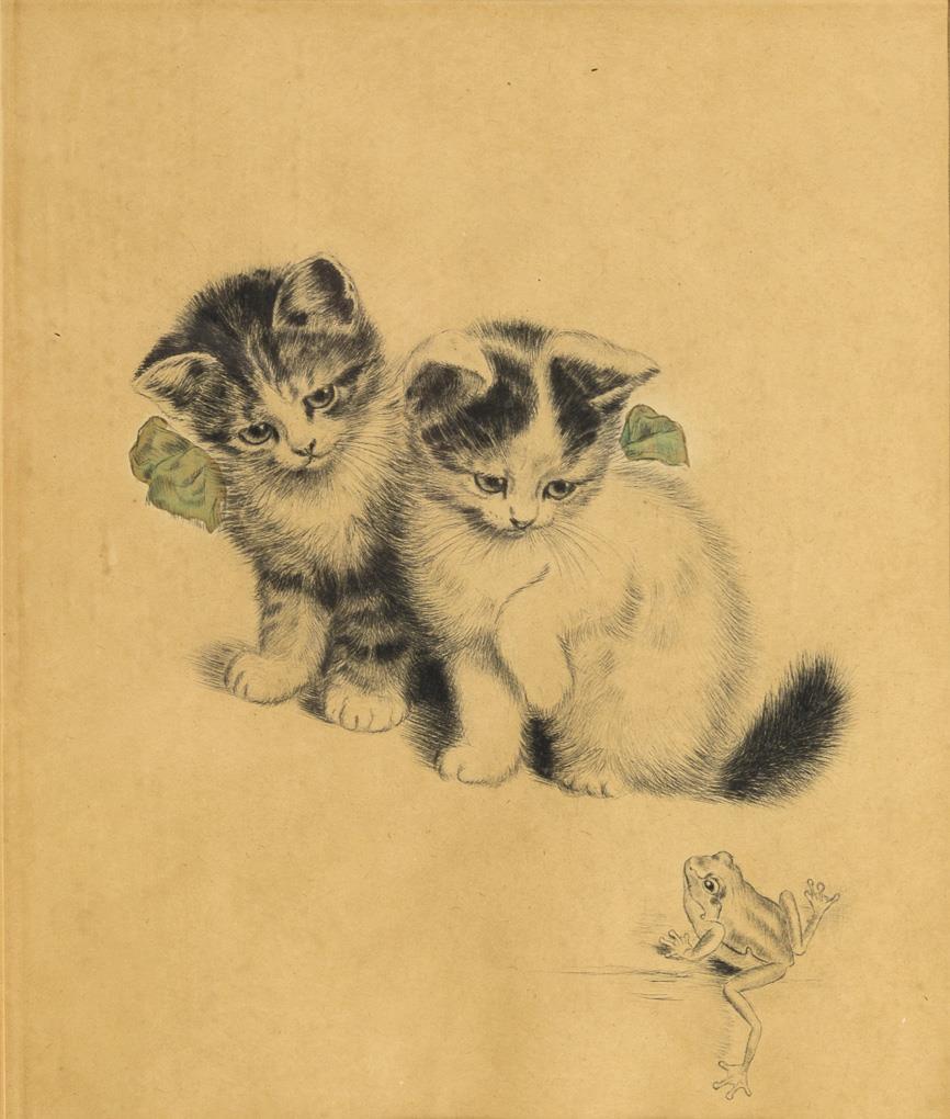 "Wer bist du?" - Zwei Kätzchen mit Frosch