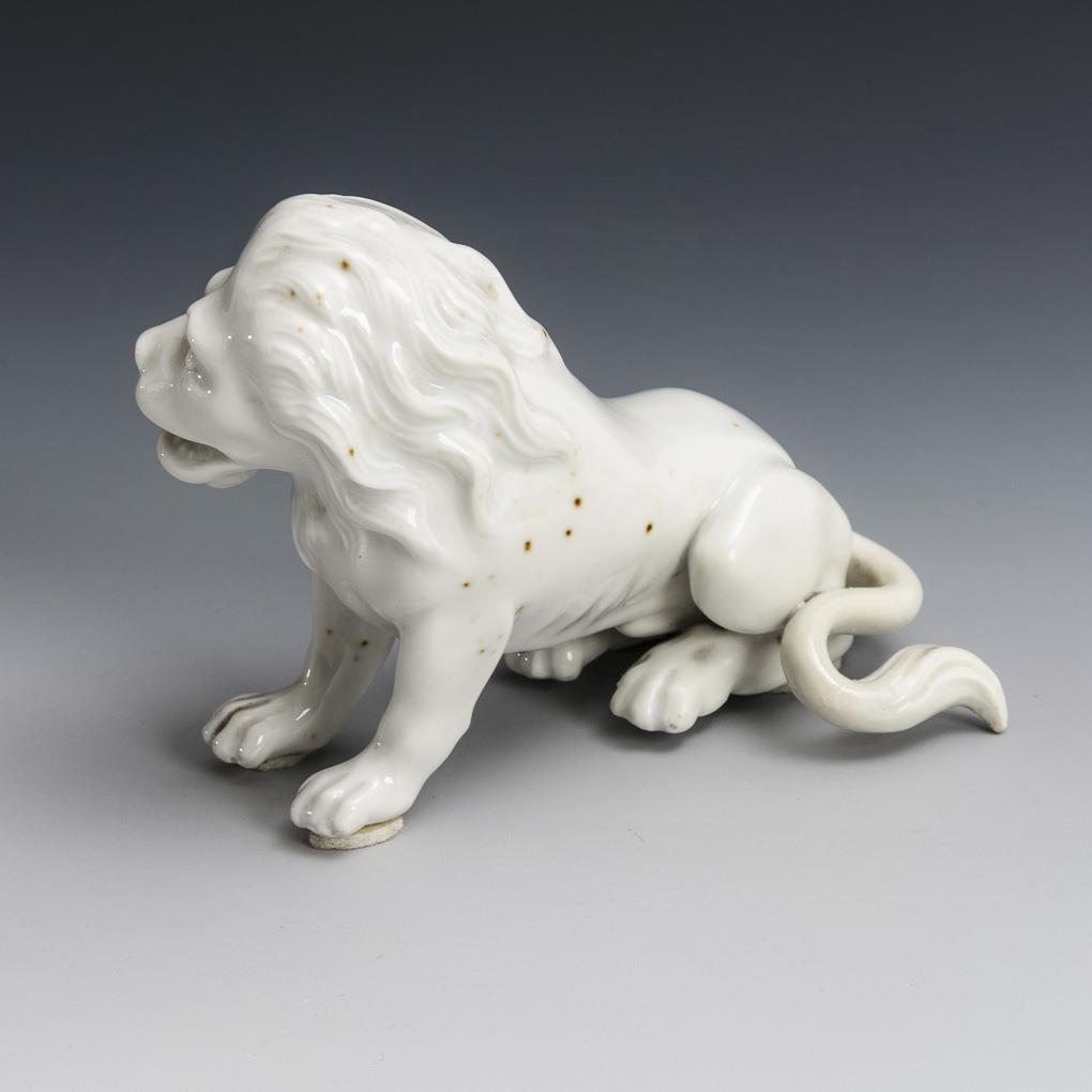 Sitzender Löwe. Schwanzende restauriert, Ascheanflug, kleiner Brandriss in der Kehle.