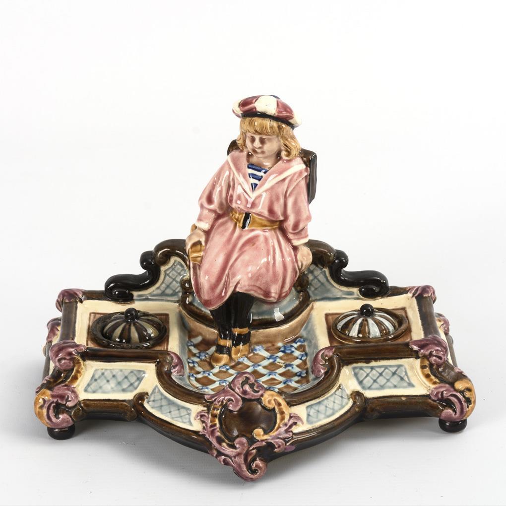 Gründerzeit-Schreibset mit Mädchenfigur. Josef Steidl, Znaim.