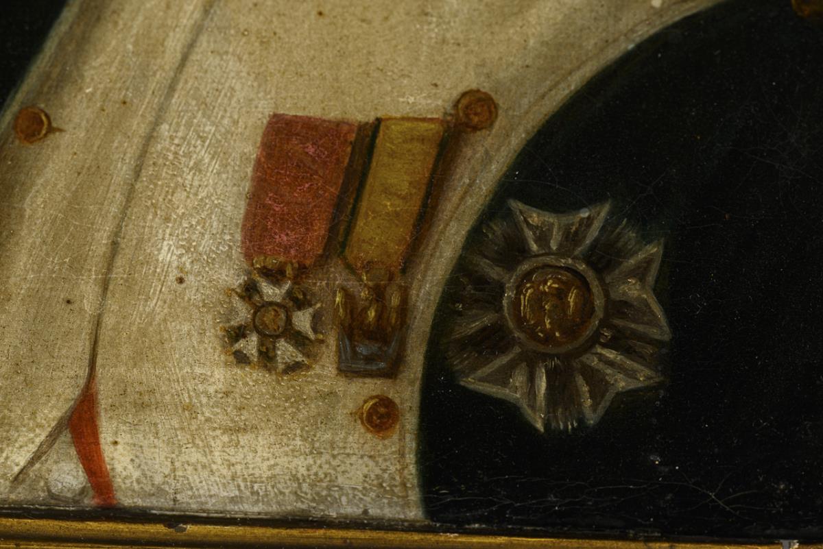 Porträt des französischen Kaisers vor neutralem Hintergrund. Altersspuren.