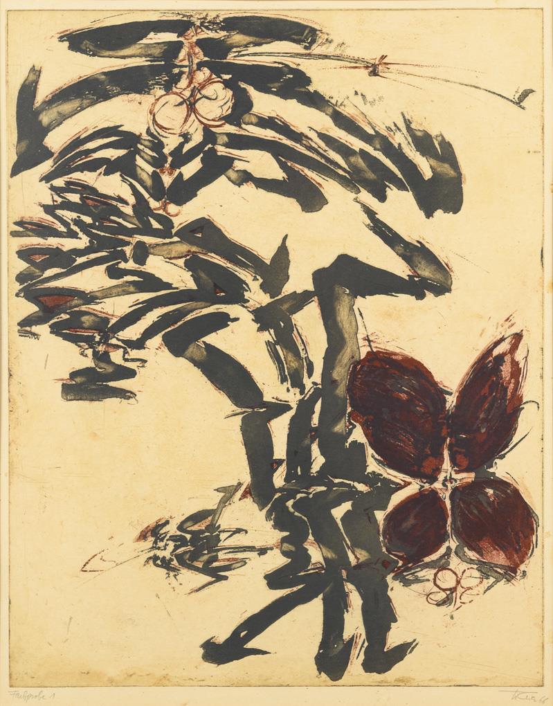 Fardradierung. Bleistiftsignatur. [19]66. Farbprobe I.