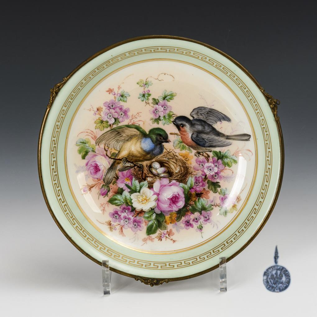 Schale mit Vogelmalerei und Bronzemontierung. KPM Berlin.