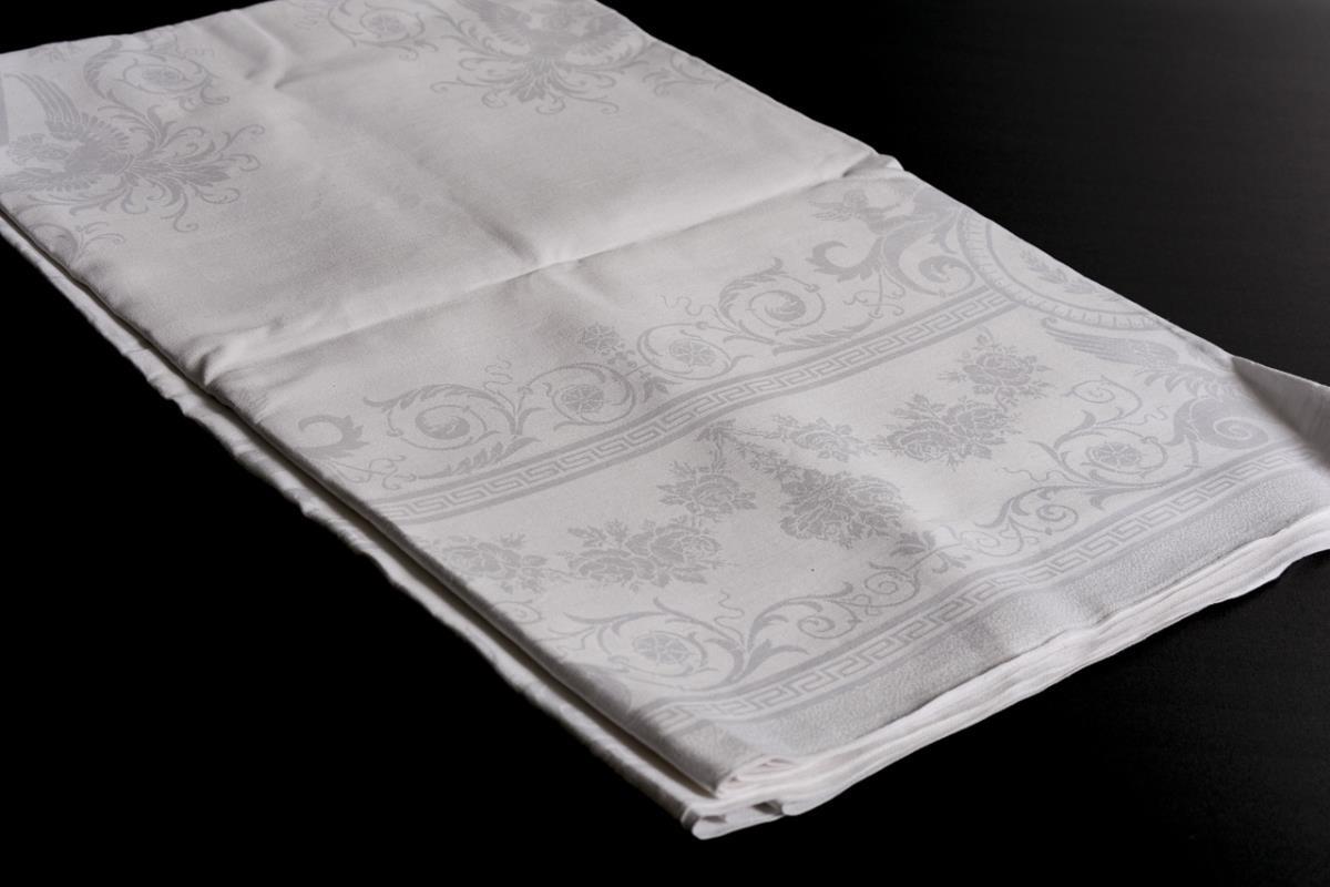 Leinendamast. 430 x 210 cm.