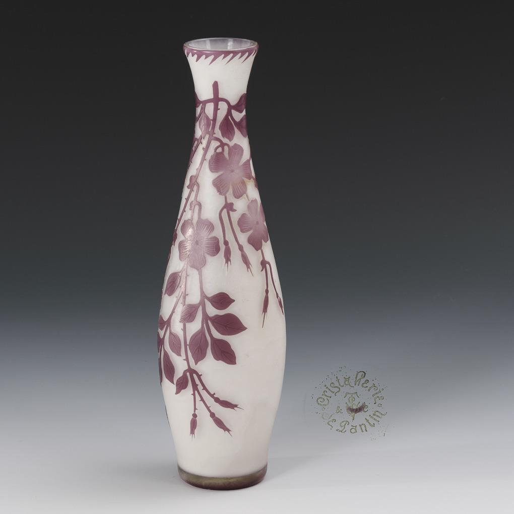 Farbloses Glas mit weißem Innenfang und violettem Überfang. H 24,5 cm.