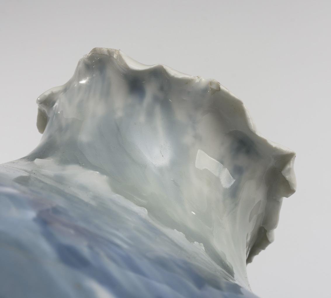 Gedrückte gebauchter Korpus mit einer umlaufend reliefartig gestalteten Meereslandschaft mit Wellen, Quallen und Rochen. Haarriss am Mündungsrand, partiell Bestoßungen an den Reliefkanten.