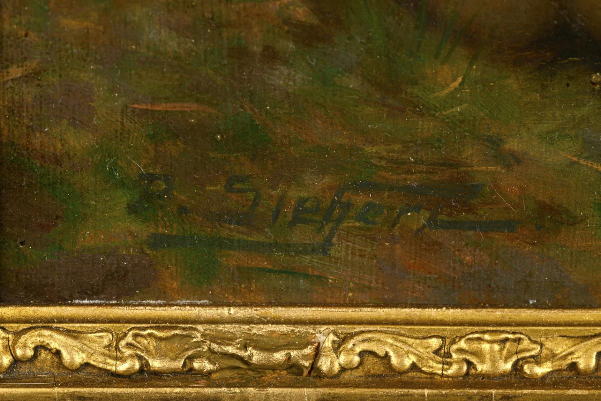 Öl/Holz. Links unten signiert, verso auf altem Klebezettel bezeichnet.