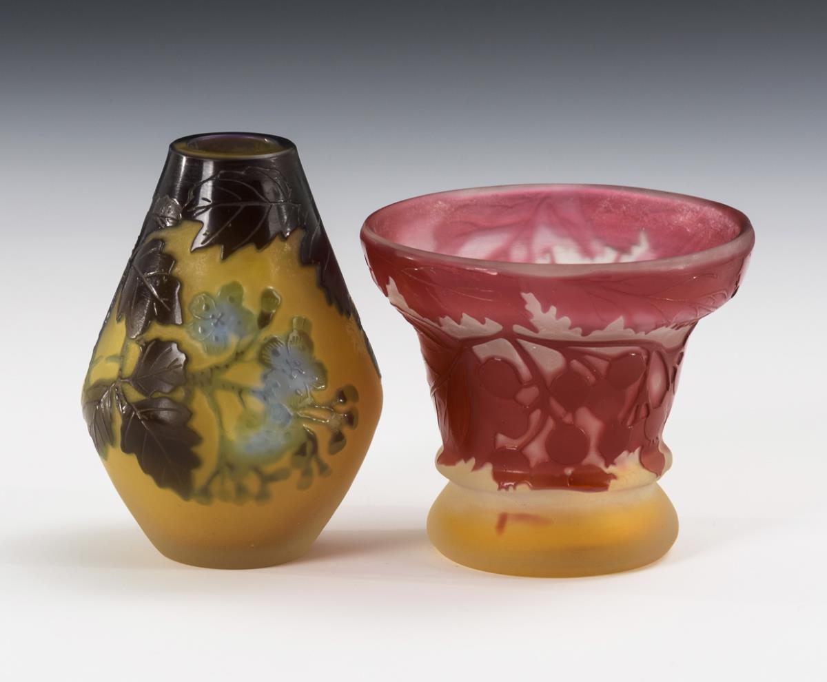 2 kleine Vasen mit Pflanzendekor. Gallé.