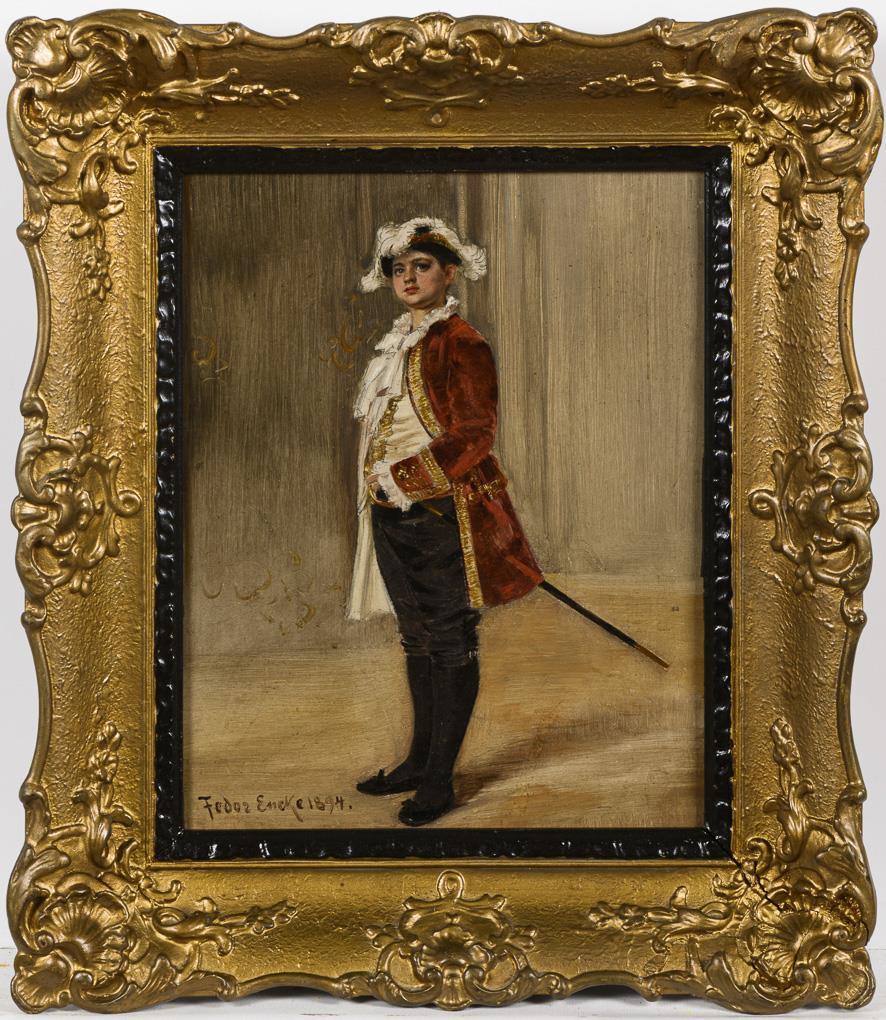 Knabe in höfischer Uniform mit Säbel