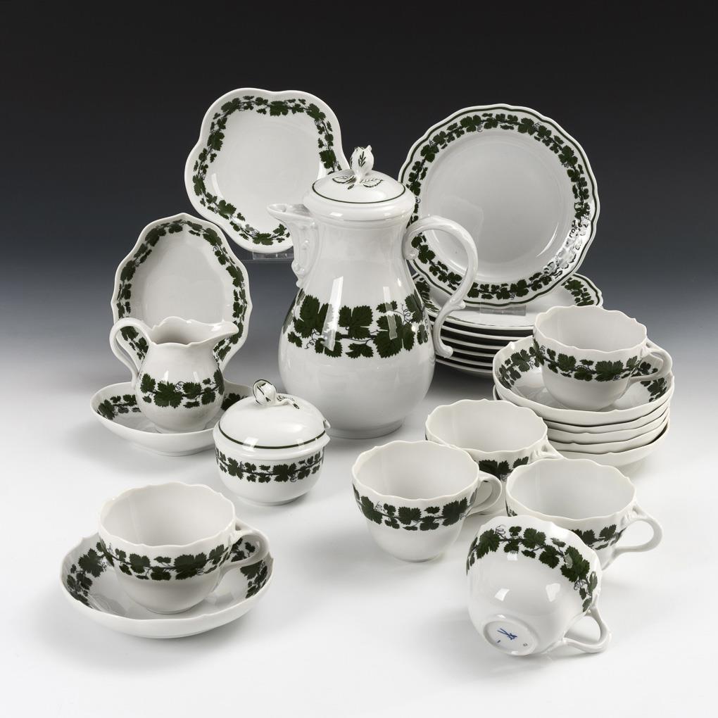 Kaffeeservice mit Weinlaubdekor. Meissen.