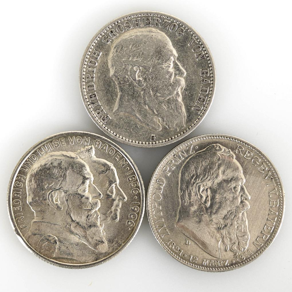 1911, "Luitpold Prinz-Regent v. Bayern 1821 - 12. März 1911. / 1906, "Friedrich und Luise von Baden 1856 - 1906" / 1904, "Friedrich Grosherzog von Baden". Zustand: sehr schön - vorzüglich.