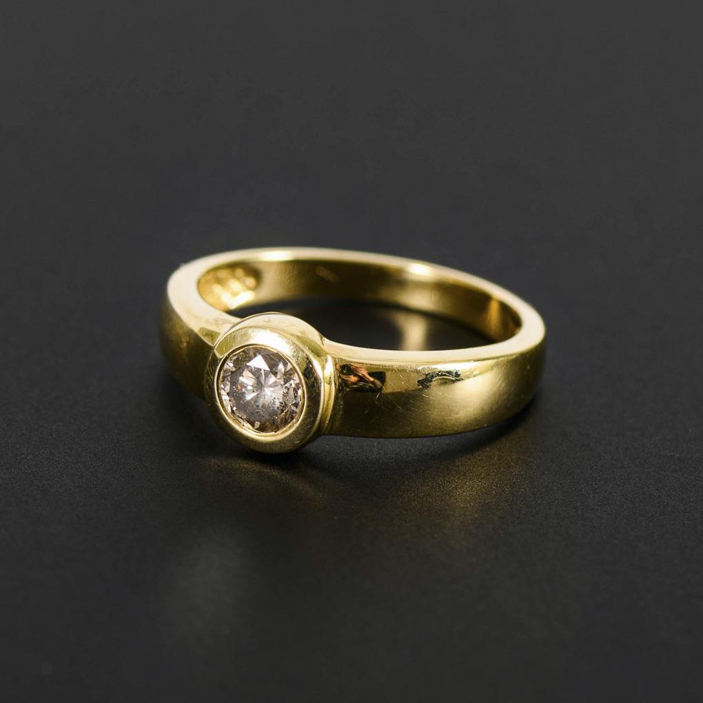 Gelbgold 585 gestempelt. Ringgröße 54. Brillant Ø ca 4,5 mm/PI. 3,5 g.