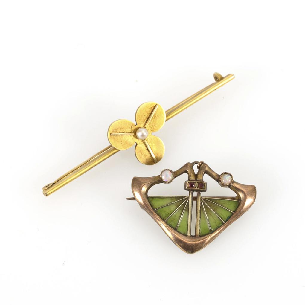 2 Jugendstilbroschen.