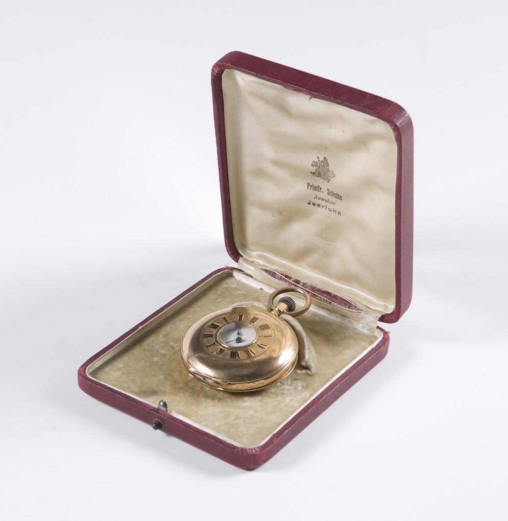 Schweizer Gold-Halbsavonette im Etui. Fritz Brandt, La-Chaux-de-Fonds.