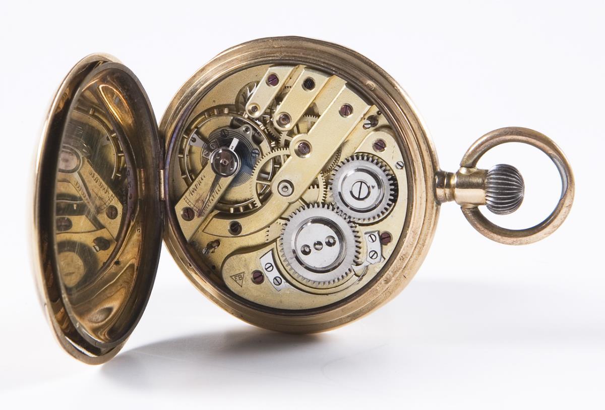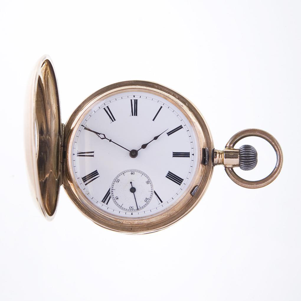 Gehäuse und Werk signiert. Gold-Gehäuse, Metall-Innendeckel. Vergoldetes Brücken-Ankerwerk, Breguet-Spirale, 15 Rubis. Weißes Emailzifferblatt, schwarze römische Zahlen, gebläute Stahlzeiger, kleine Sekunde. Kronenaufzug. Im Kurzzeit-Test funktionsfähig. Kleine Dellen, kleiner Emaildefekt im Sprungdeckel.