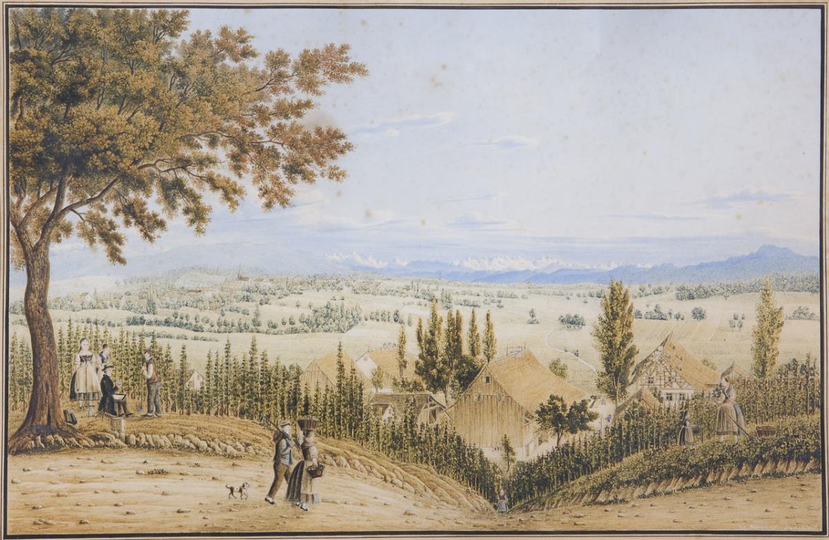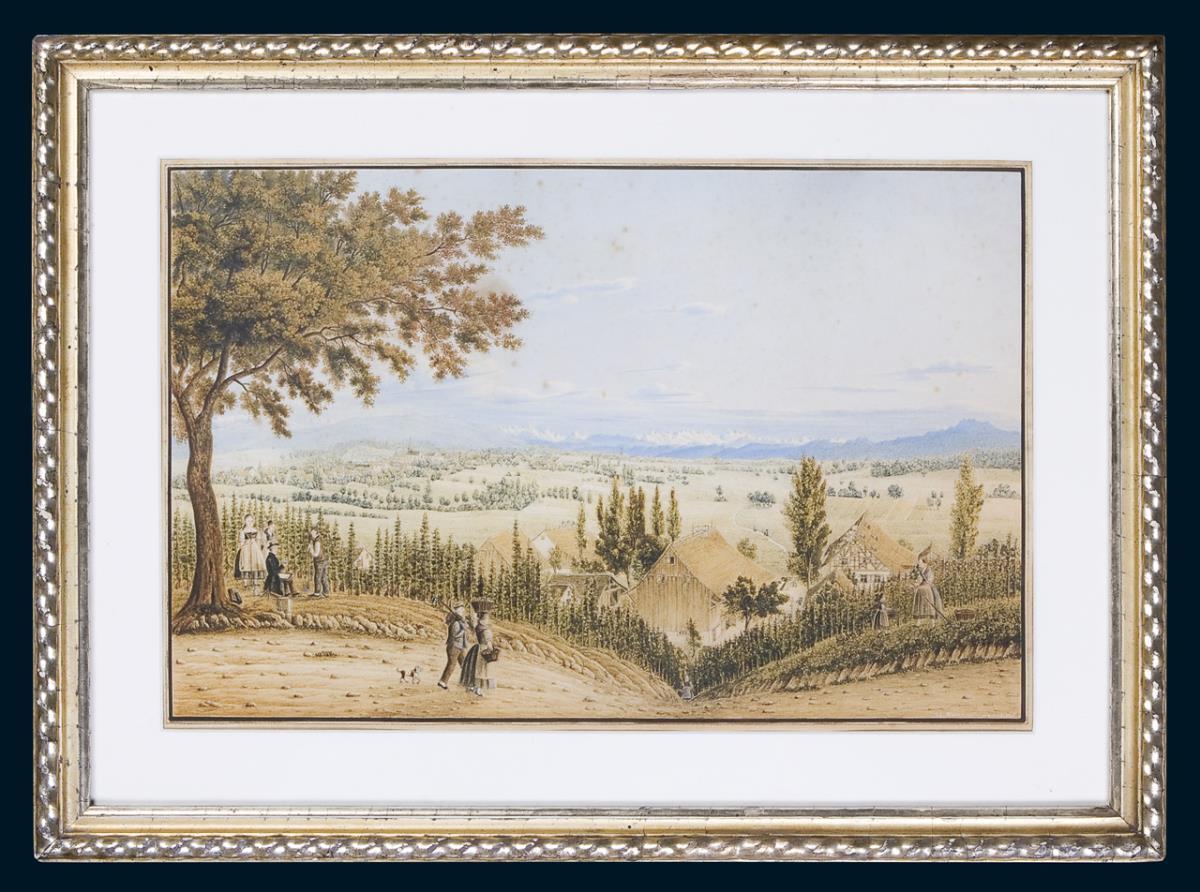 Die Dörfer Seebach und Affoltern sind heute Vororte Zürichs und wurden 1934 in Zürich eingemeindet. Rückseitig auf altem Zettel bezeichnet. Passepartout, verglaster profilierter Waschgoldrahmen. Himmel partiell stockfleckig.