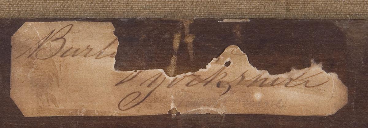 Romantisches Seestück in der Tradition der niederländischen Marinemalerei. Originaler Keilrahmen, rückseitig Reste eines alten Klebezettels. Neuwertiger Profilrahmen.