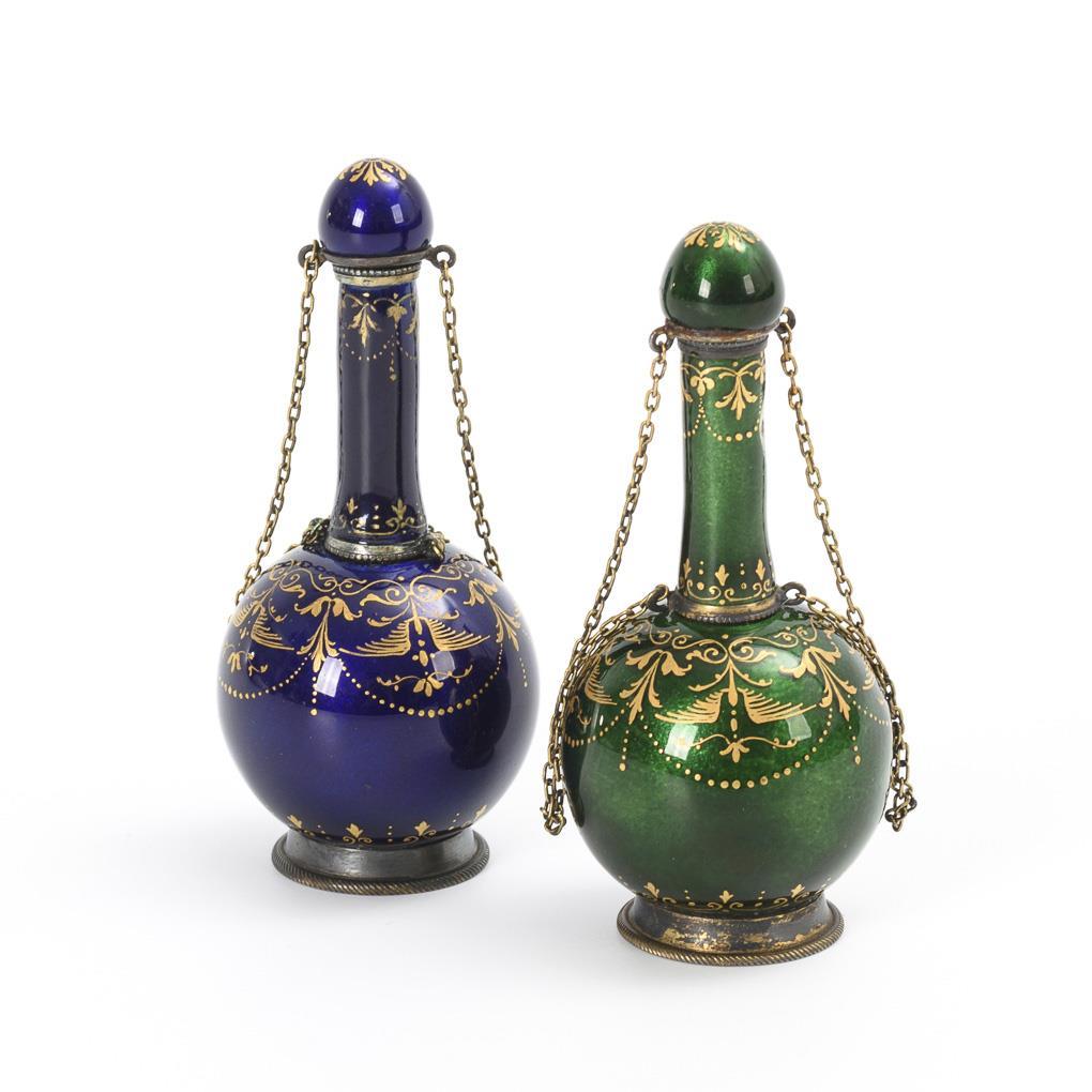 Paar Silber-Email-Flakons. Wien, Ludwig Politzer, kaiserlich und königlicher Hoflieferant.