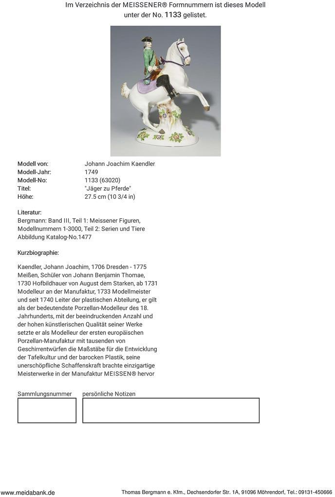 Kaendler, Hofbildhauer und Modelleur. Seit 1731 an der Manufaktur. Ab 1749 Leiter der plastischen Abteilung. Meissen-Manufaktur-Preis: 8490,- Euro * Partnerauktion Bergmann.