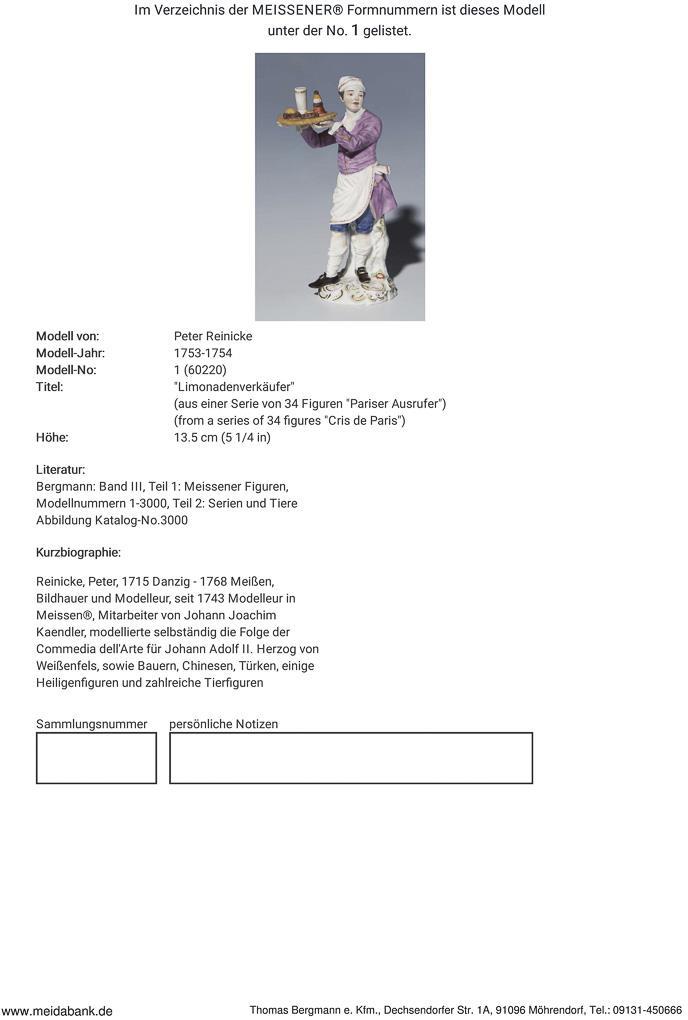 Pariser Ausrufer: Limonadenverkäufer. Meissen.